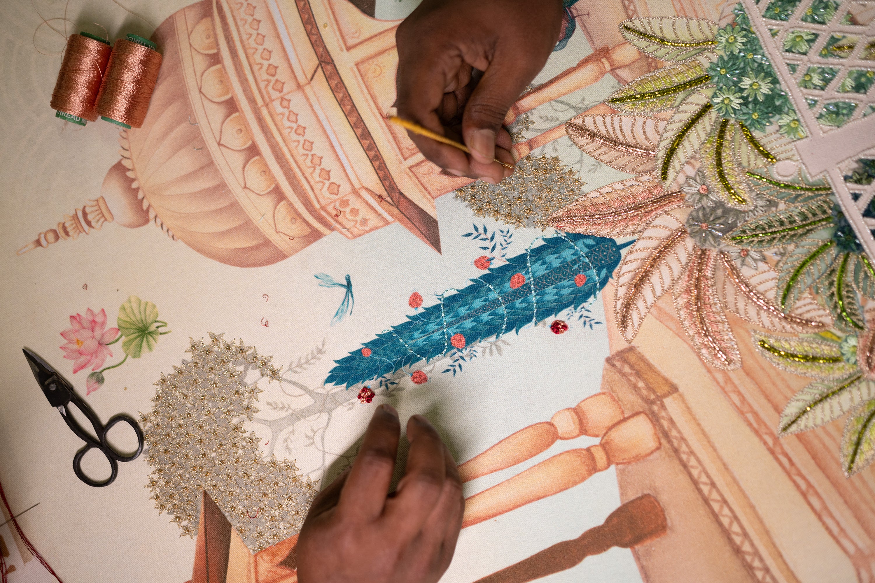Nirvana Cushion Cover with Hand embroidered lotus motif