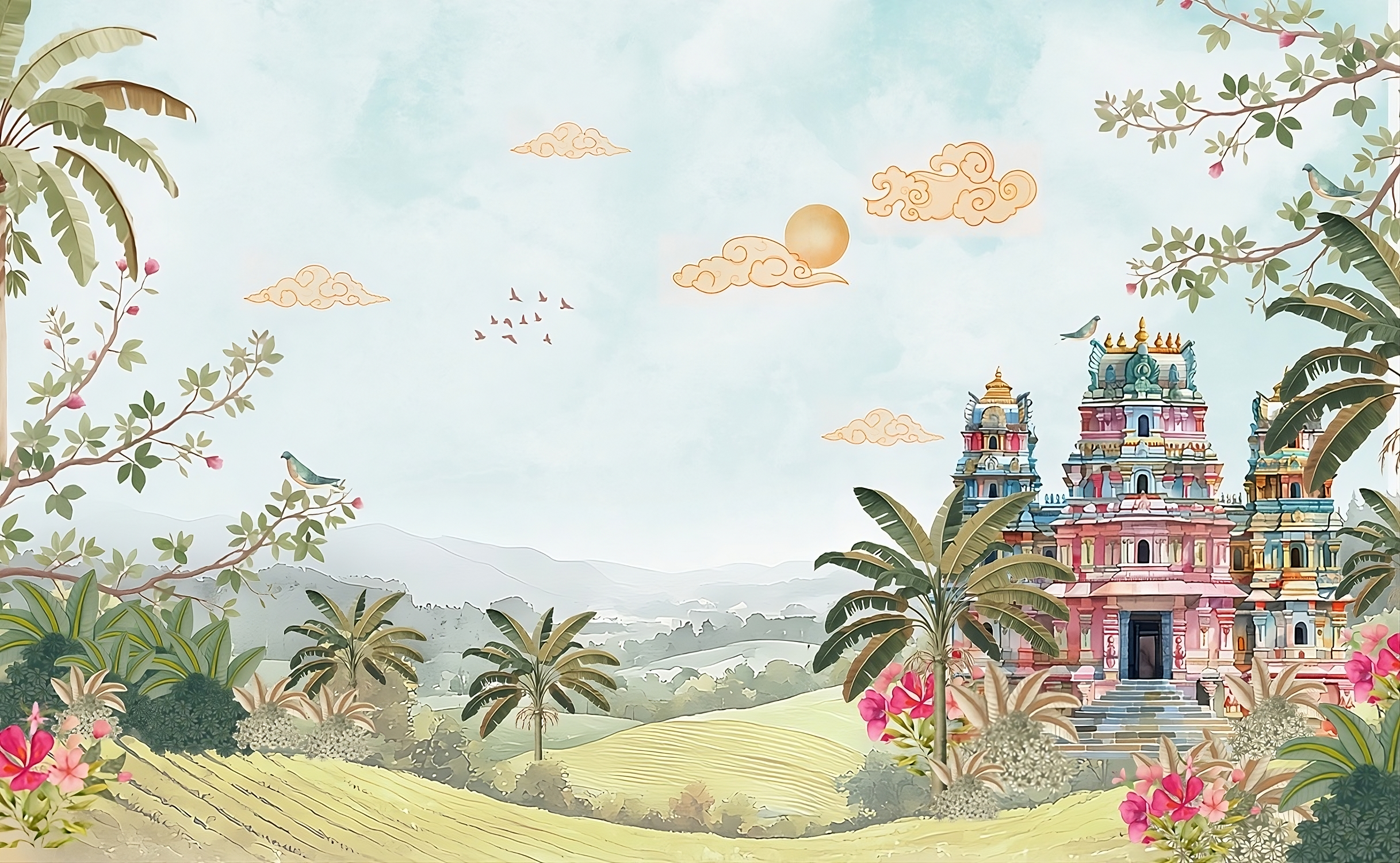 INDIAN FIELDS AND A PEACOCK PEAKING
