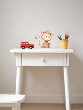 This decal features a cartoon monkey with a calm and content facial expression. The monkey sits down, with its eyes closed and a slight smile. The color palette consists of soft brown tones with some beige on the face, ears, belly, hands, and feet.